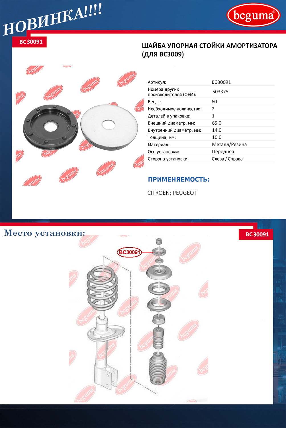 В ассортимете BC3009 - опора амортизатора, BC30091 - шайба упорная, BC30092 - комплект опора +шайба